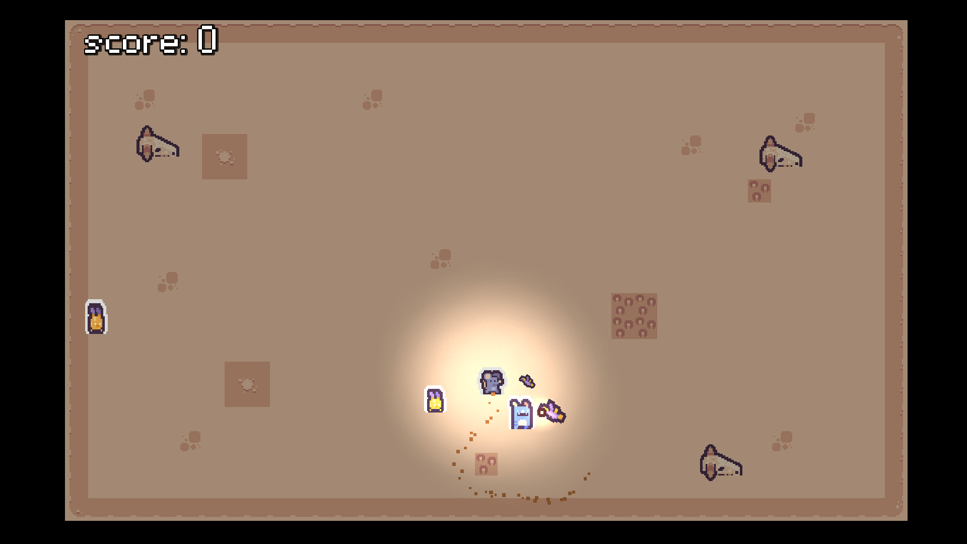 Welcome to Gun and Dice – top-down shooter where you shoot and fight bunnies in a dessert and a dice that change the game rules!